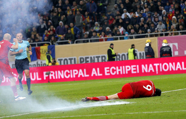 هواداران رومانی که به شدت لواندفوسکی را هو می کردند، تلاش کردند با بر هم زدن تمرکز این بازیکن، مانع گلزنی او شود ولی این بازیکن دو بار برای تیمش گلزنی کرد. در یکی از صحنه های جنجالی بازی، هواداران رومانی به صورت این بازیکن مواد آتشزا پرتاب کردند که نزدیک بود مشکل جدی برای لواندوفکسی ایجاد شود. داور بازی هم بلافاصله بازی را متوقف کرد و وقتی از سلامت این بازیکن مطلع شد، بازی را ادامه داد.