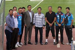 بازیکنان تیم فوتبال بزرگسالان با سرمربی جوانان خوش و بش کردند.